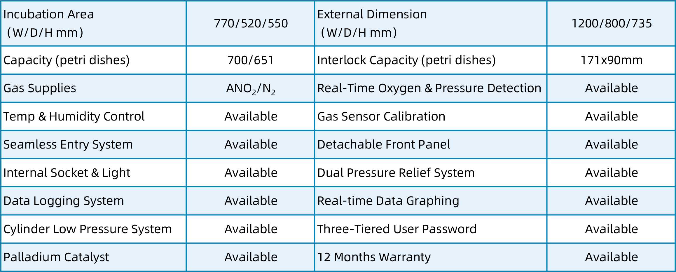 • High-performance axial fans enable rapid gas exchange and even diffusion for long-term culture stability