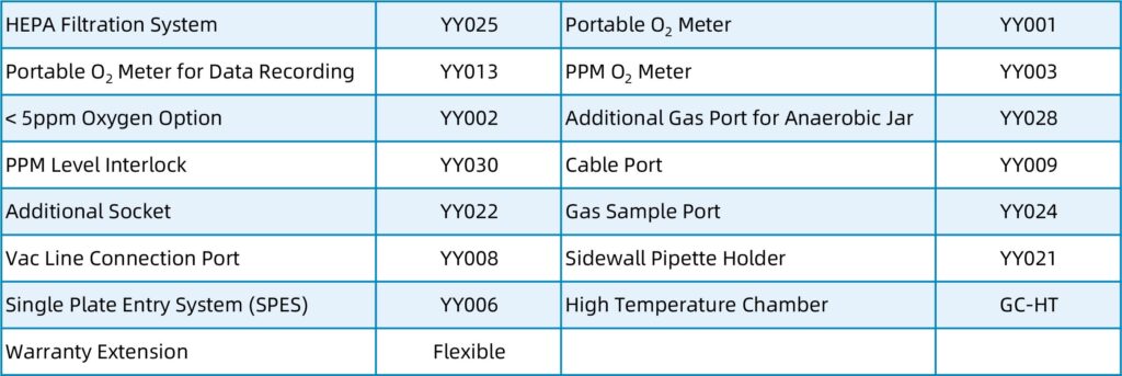 - O₂ Monitoring with Alarm: Real-time monitoring of oxygen concentration inside the chamber with alarm notification