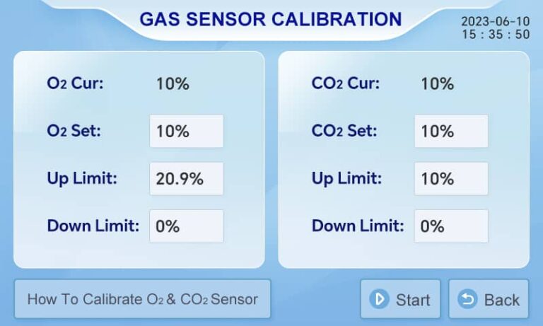CO₂ Control Range: 0%–20.0%, in 0.1% increments (upgradeable to 0–60.0%)
