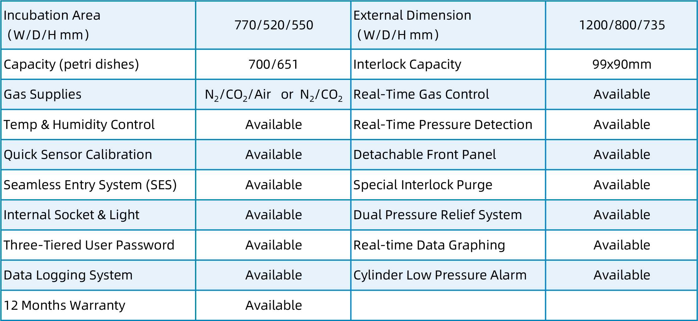• O₂ Control Range: 0.1%–25.0%, in 0.1% increments